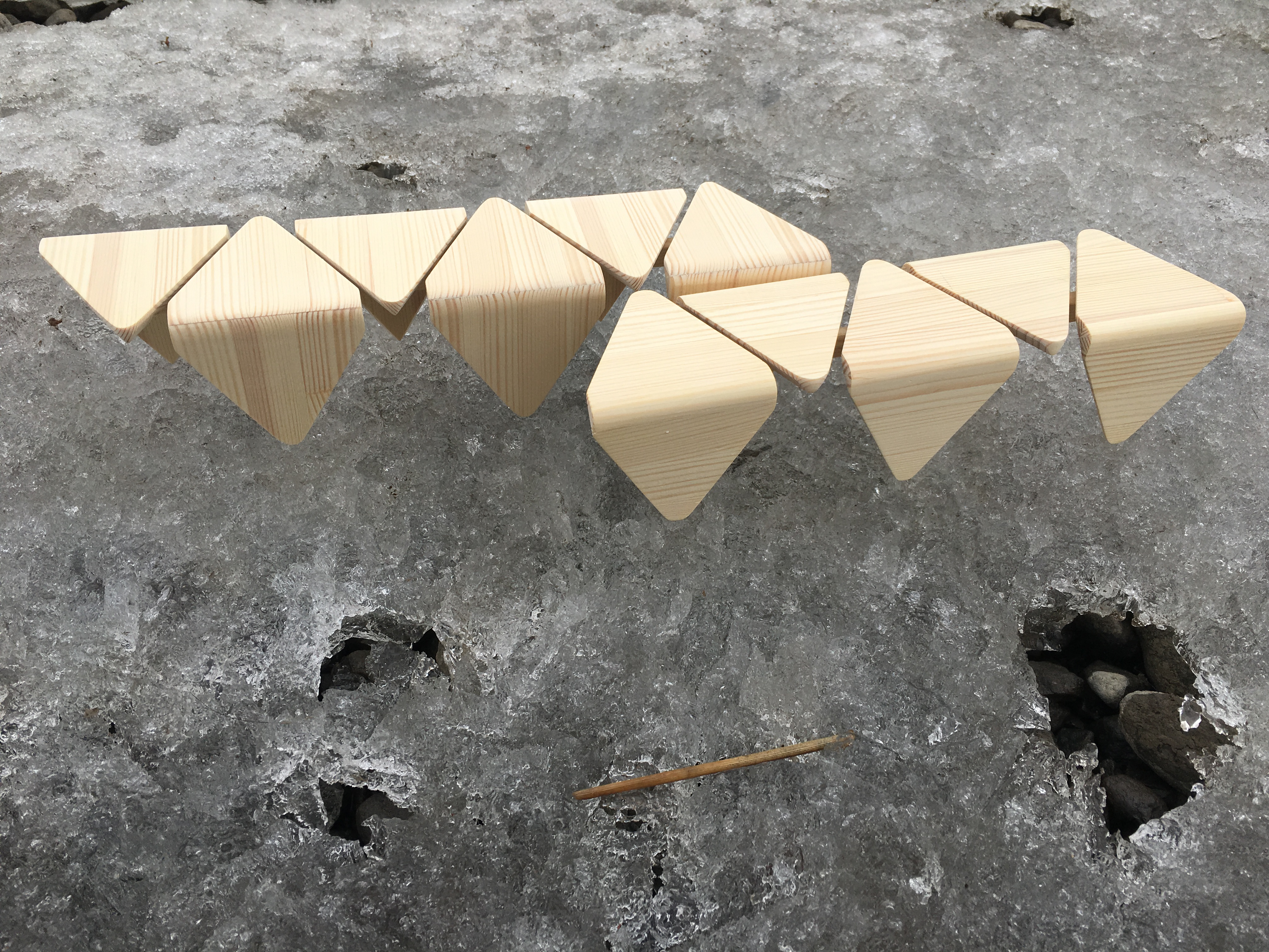 In the earlier spring, ice floating on the sea surface starts to cracking and create beautiful gaps. The bench carries a similar visual lauguage and uses repeated triangle to form everyparts. Form and function reached a highly harmony and elegant appearance.