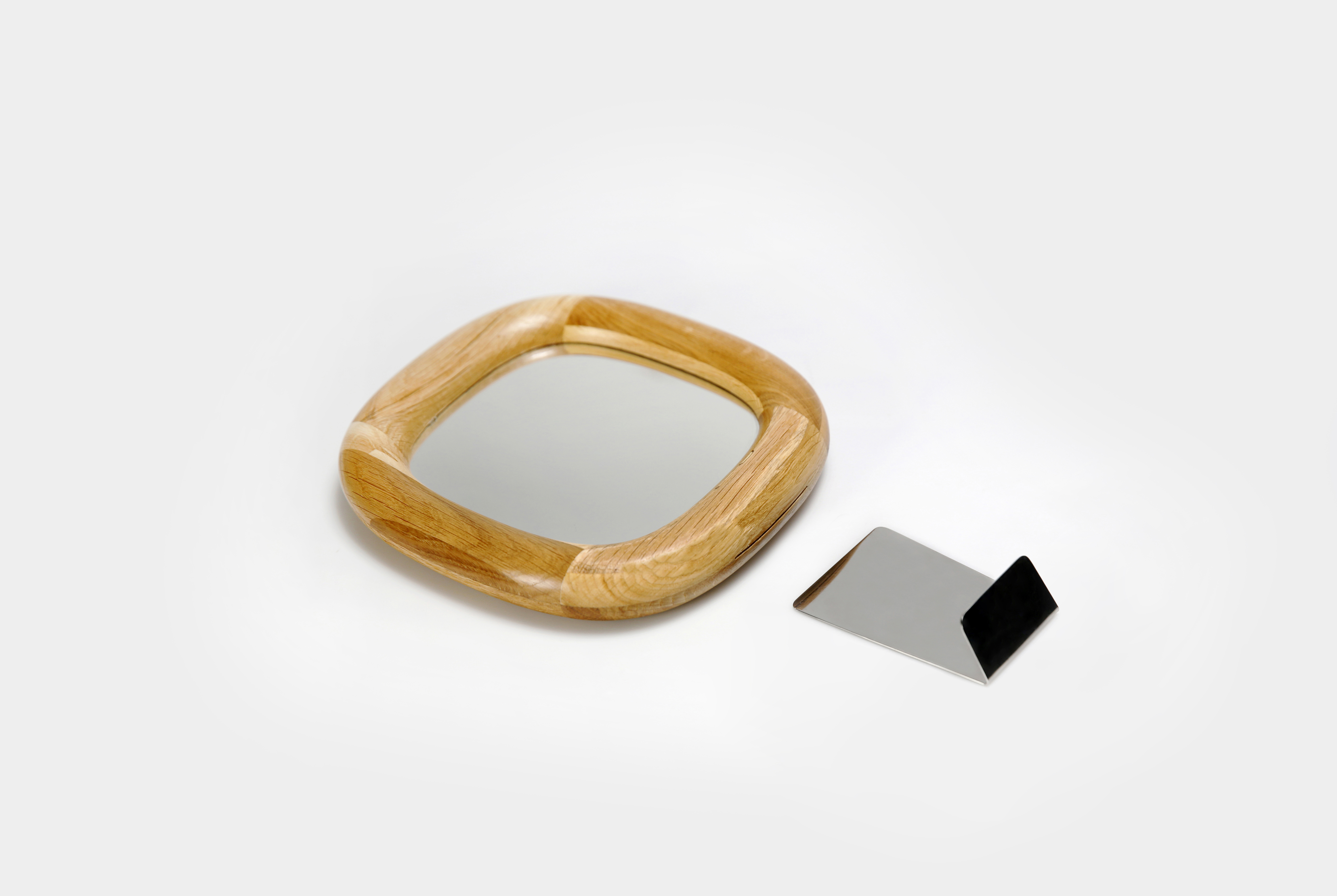 Superellipse, also known as a Lamé curve is an ideal shape between circle and square, which is welcome and harmony. The section dimension of mirror frame is designed can be hold in one hand. It can be hung on the wall or stands on table by inserting a steel support. The material can be any leftover small woodpieces to avoid wasting.