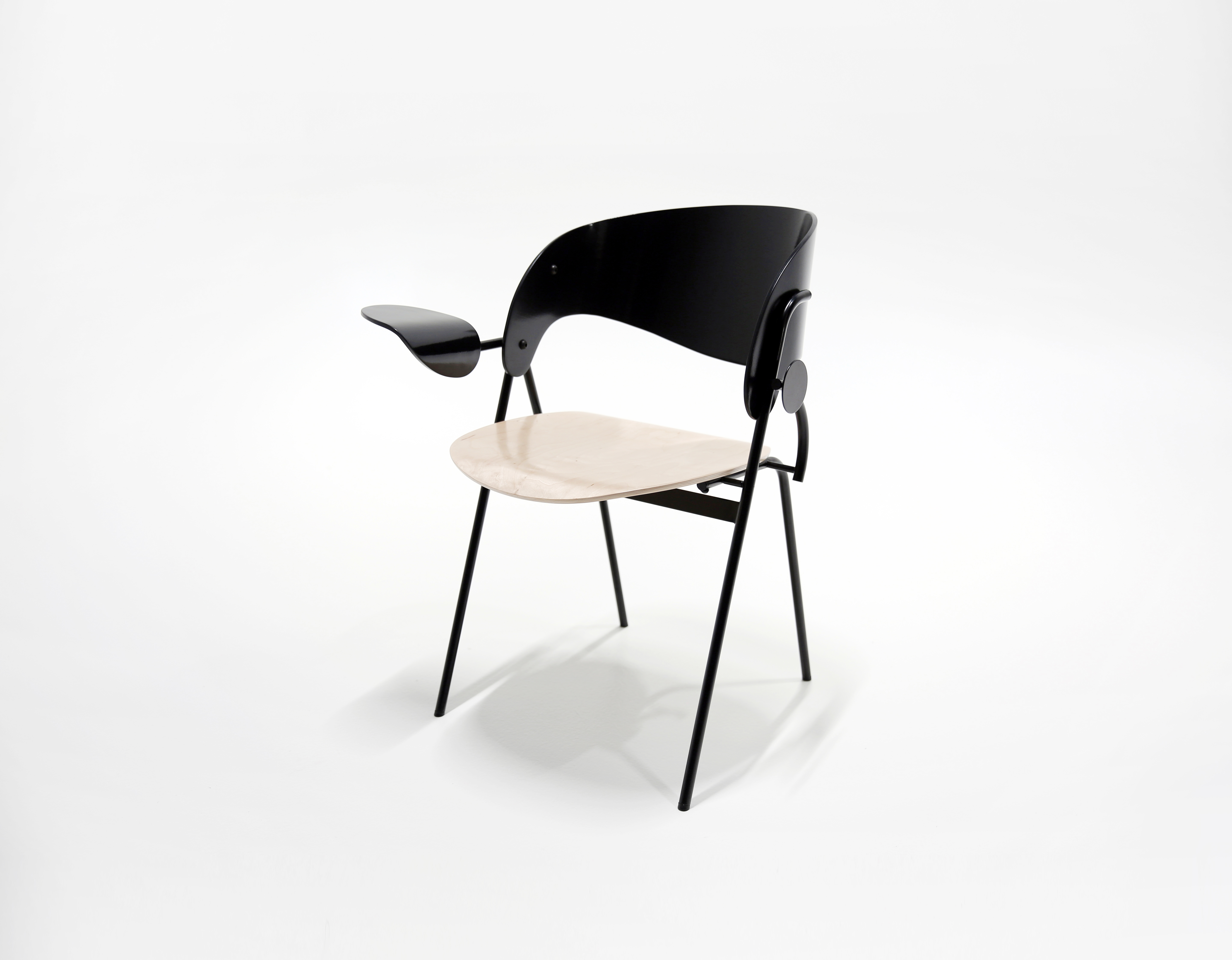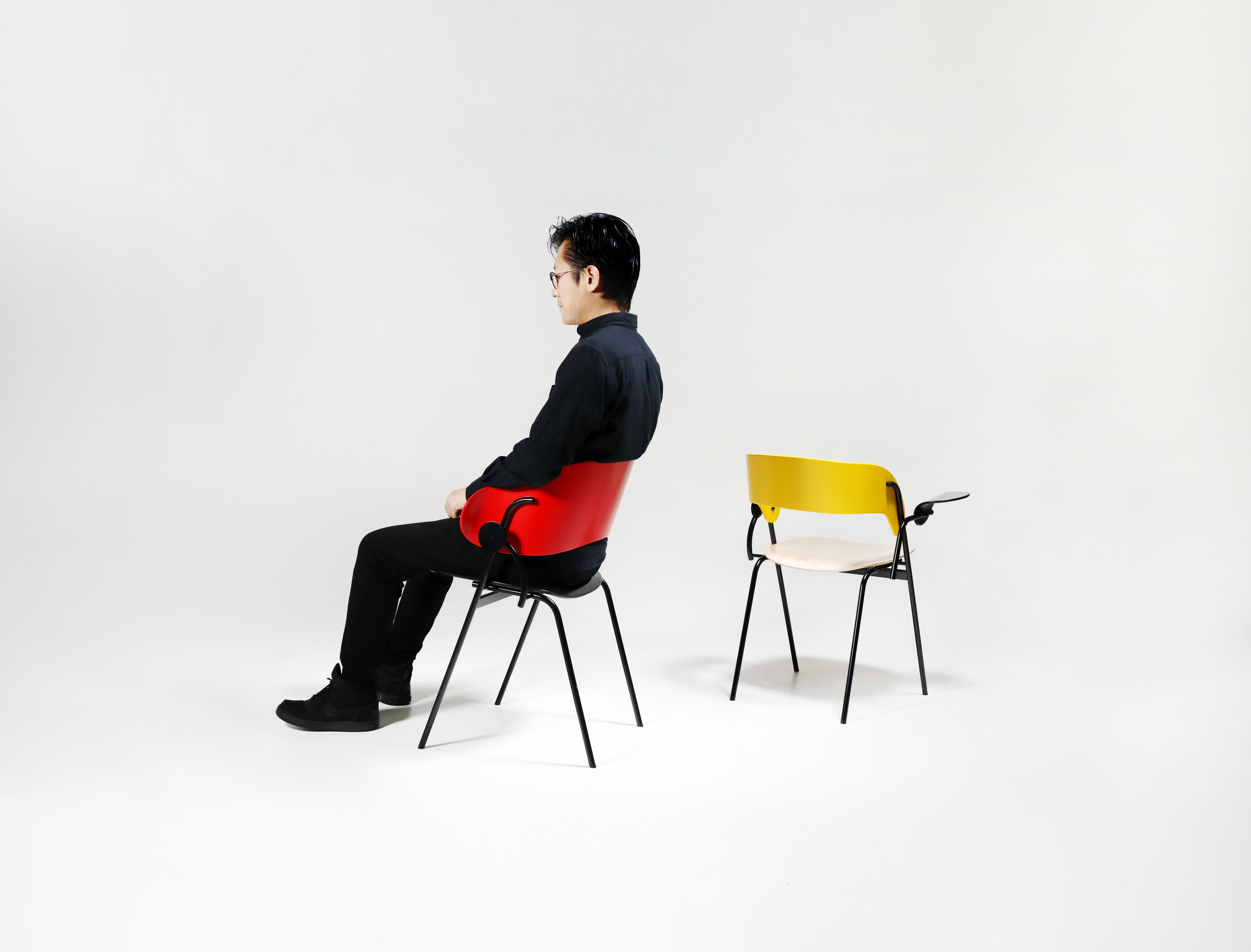 Based on Poppy chair, Poppy plus is with a functional small table for coffee or notebook in certain context. The metal structure can be disassembled and folded for smaller package. The backrest is replaceable with various shapes and colors serving different context.