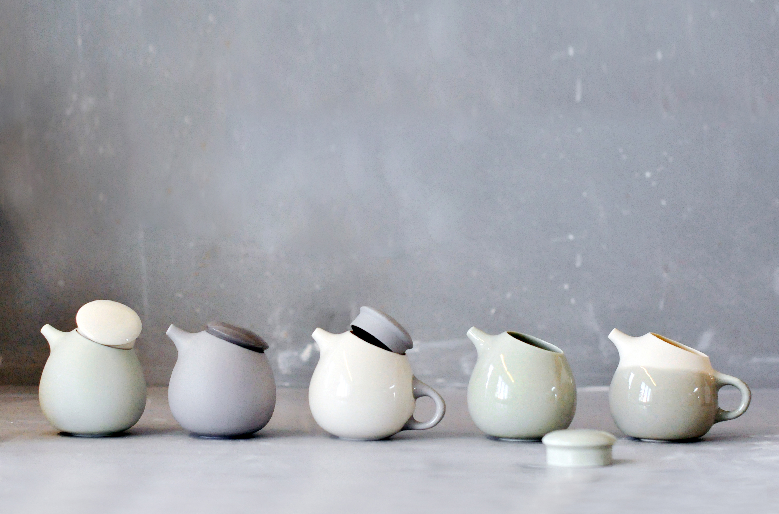 Pride is a collection of teapots and milk pots with an amusing character. When holding in hand, the smooth profile brings a full and satisfying tactile sense. There are different combinations in color and texture that can be applied to the lid, handle, and inner surface.