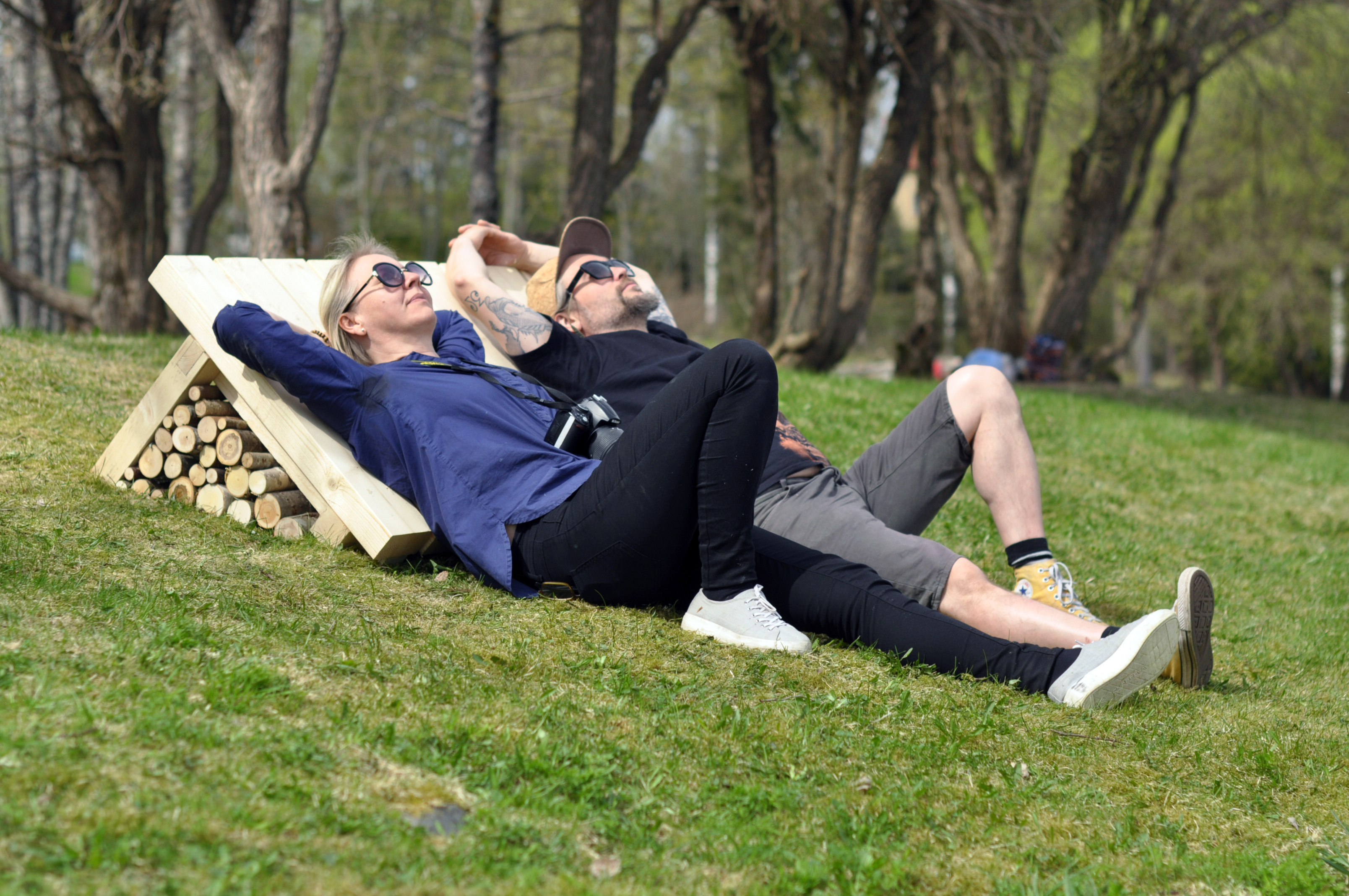 Kitee is a small town close to the boundary between Finland and Russia. The site is belt-shaped light slop along with a big lake, with wonderful lake-view and typical Finnish scenery. When the ground was defined as “seat” , we made some backrests inserting the soil so that the furnitures are integrated with the environment, and archieved each other.